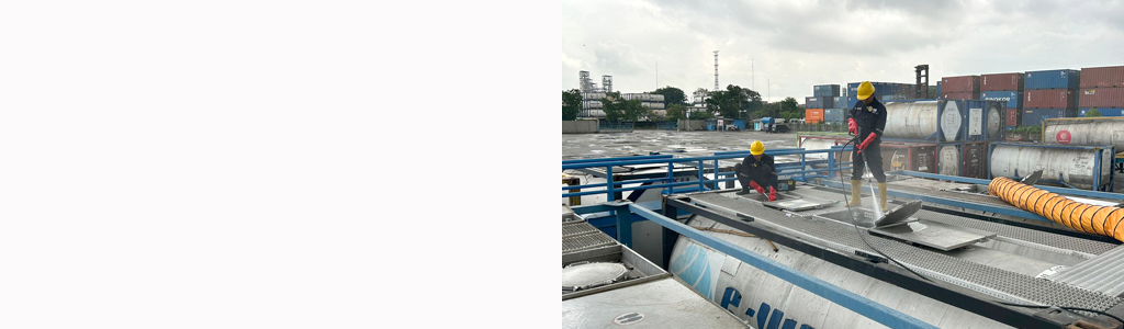 We have 4 x 3 area of cleaning bay with 24 tanks per day capacity. We are experienced in cleaning wide range of carrier residues, including food grade products, chemicals, resins and latex.